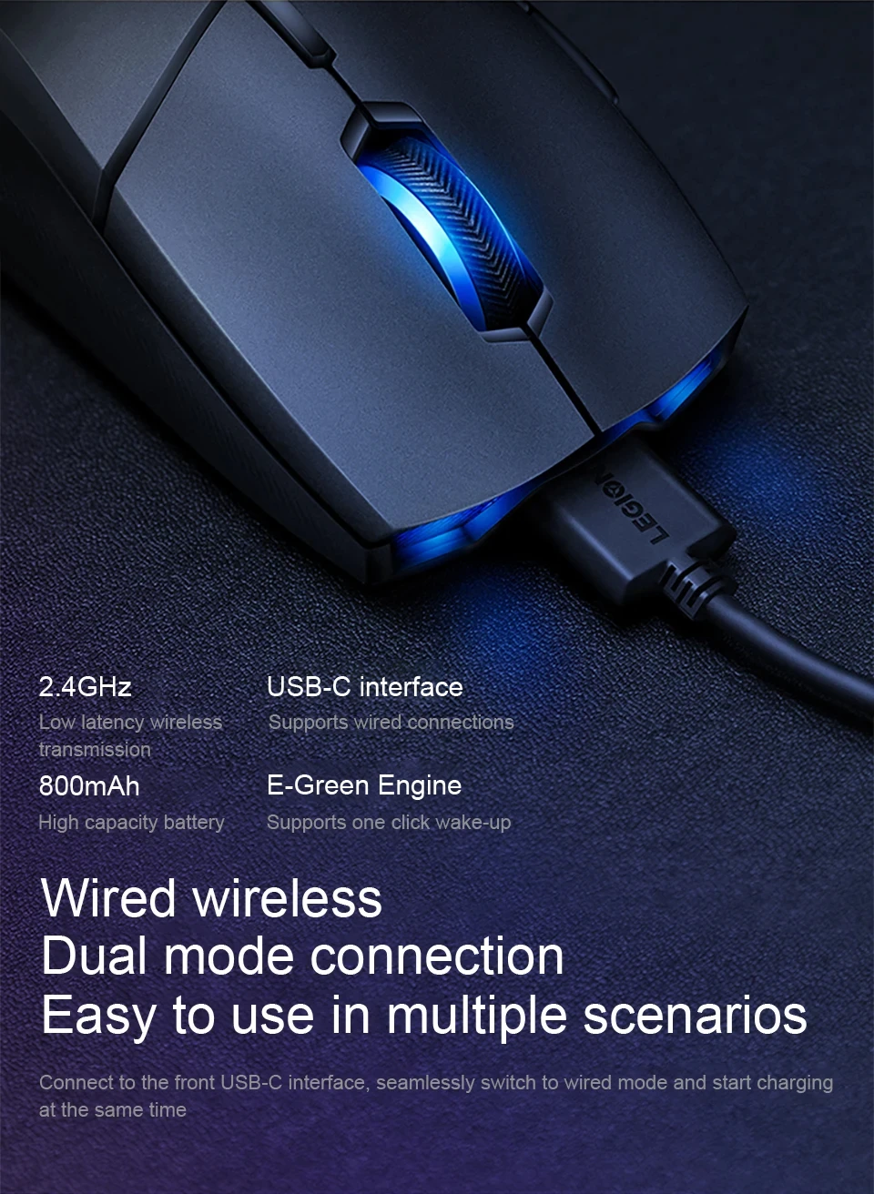Игровая мышь LENOVO LEGION M500 с комбинированным подключением: через кабель USB-TypeC и беспроводное - через USB 2.4ГГц