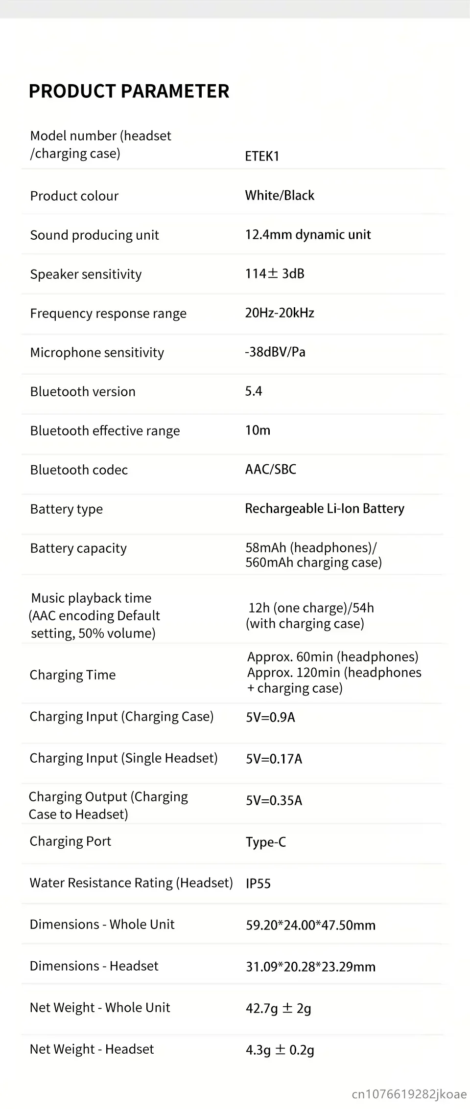 Вес (наушники + зарядный кейс): 46.2 г±0.2 г