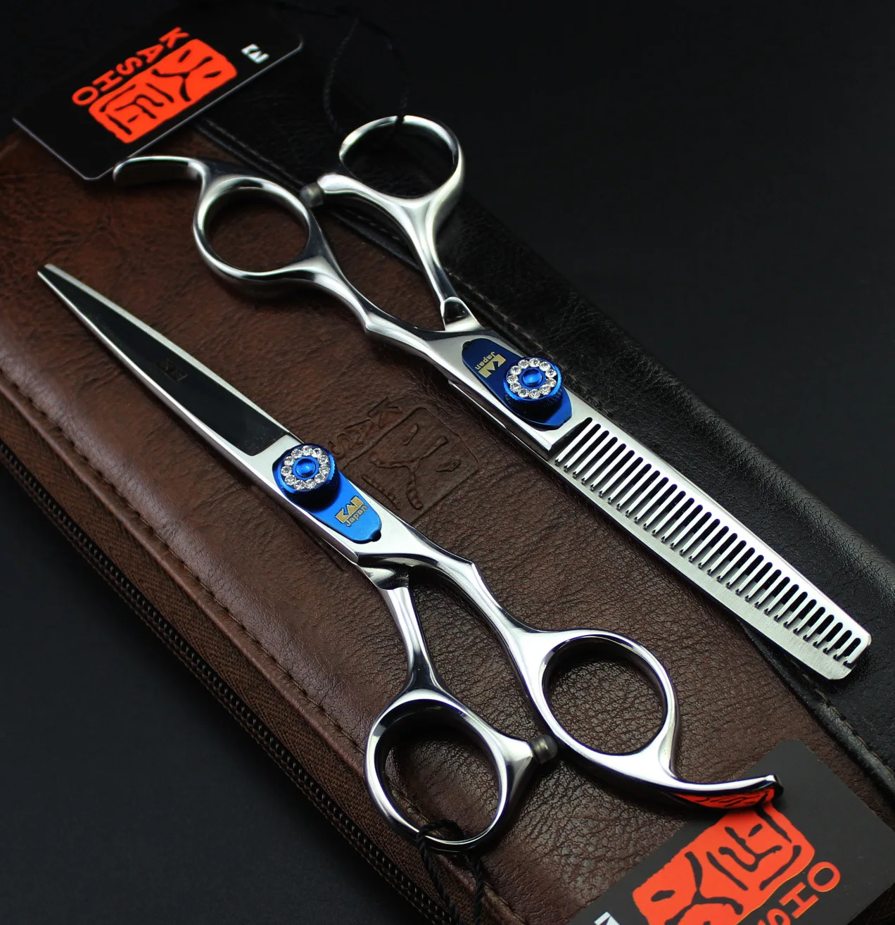 Набор парикмахерских ножниц для стрижки филирования волос KASHO размер 6,0 дюймов Silver-blue