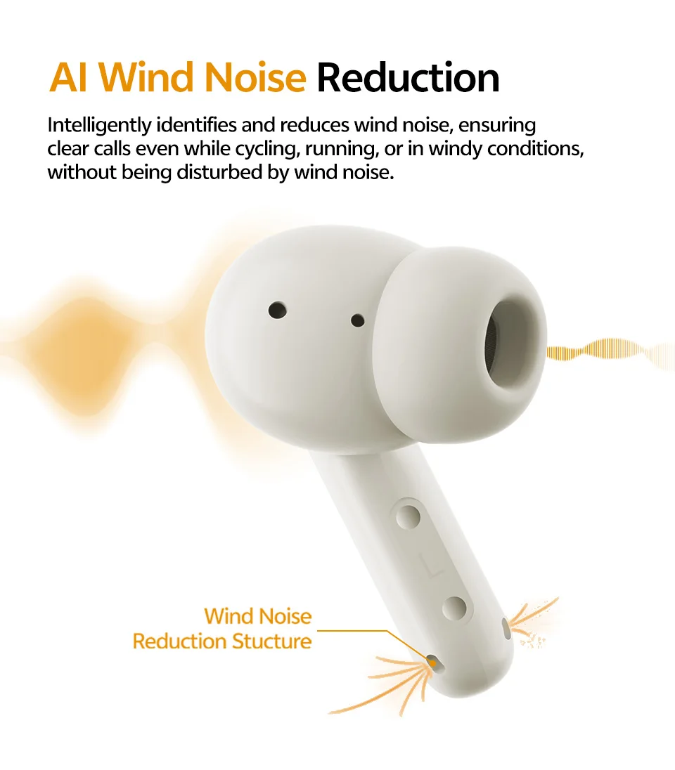 Интеллектуально идентифицирует и снижает шум ветра, обеспечивая четкие звонки даже во время езды на велосипеде, бега или в ветреную погоду, не беспокоя шум ветра.