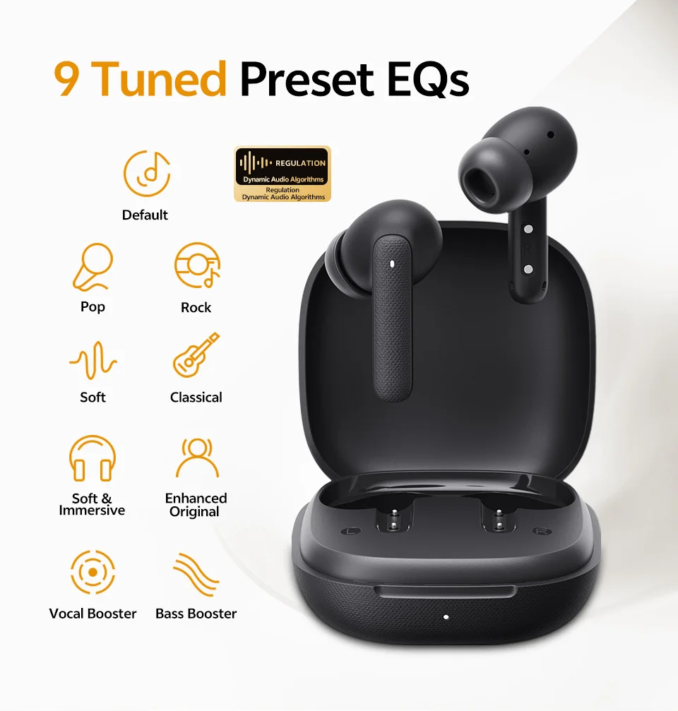 Для геймеров и удивительных видео низкая задержка 68 мс минимизирует задержку, что делает их пригодными для плавного аудиовизуального восприятия. Они также имеют 9 установленных звуковых профилей, позволяющих пользователям выбирать лучшие настройки звука в соответствии со своими музыкальными предпочтениями. Наушники также созданы для комфорта: каждый должен весить около 3,9 г, а конструкция бионической дуги обеспечивает лучшее прилегание к ушному каналу.