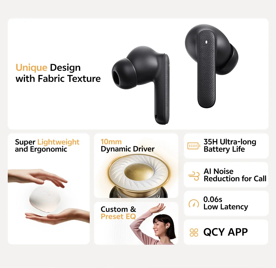 QCY Buds TWS Bluetooth 5.3 Беспроводные наушники 10 мм Динамический драйвер AI Ветро с шумоподавлением Наушники 0,68S с низкой задержкой 35H