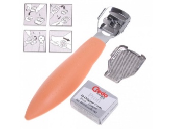 - Бритва. Особлива бритва для педикюру застосовується при обробці зон з огрубілою шкірою. Застосовують її в самому крайньому випадку, якщо інші засоби не в силах впоратися з проблемою.